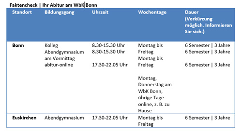 Den Abschluss Abitur können Sie bei uns am WbK Bonn sowohl in Bonn als auch in Euskirchen machen.